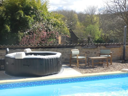 Retrouvez notre spa pouvant accueillir 6 personnes, directement aux abords de la piscine